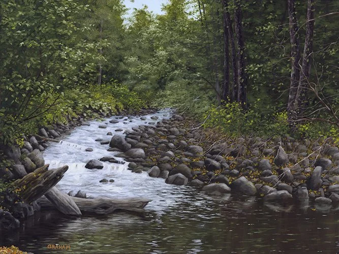 This scene is from the Cultus Lake area . My wife and I were looking at some newly built cottages and heard the little stream in the background and went to investigate. It was a nice pleasant spot .